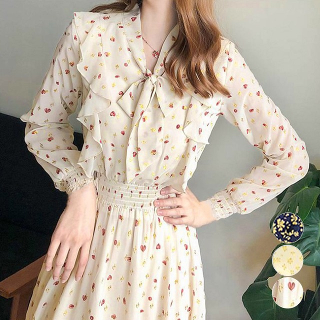 レディース おしゃれ フラワープリント ロングワンピース レトロ風 春夏 長袖ワンピース きれいめ リゾートワンピ 春ワンピ体型カバー ワンピ カジュアル シフォンワンピ新作 小花柄と愛らしいボウタイリボンがポイントのレトロ風のワンピースです 小花柄は全体に散りばめられ、レトロでかわいらしい印象を与えます 襟元にあしらわれたボウタイリボンがアクセントになっており、上品で可憐な雰囲気を演出しています 春や夏には涼しげな素材で爽やかに、秋や冬には上着を羽織って温かく着用できる、オールシーズン着用可能な一着です 素材:ポリエステル100% カラー:ブラック/ネイビー/くすみピンク サイズ:ワンサイズ 総丈:約100cm 肩幅:約42cm 袖丈:約54cm ゆき:約75cm 身幅:約48cm 胸囲:約98cm ウエスト(ゴム仕様):約60-100cm ヒップ:約160cm 裏地:なし 伸縮性:なし 透け感:なし 生産国:中国 ※すべて平置きサイズです(採寸方法違いより、多少の誤差がございますので、ご了承ください)。 ※海外輸入品のため、商品の細部仕様は多少異なる場合がございます。予めご了承の上、ご注文お願い致します。 ※商品はお取引先様より直送になります。 ご注文後のキャンセル及び良品の返品はできませんので、予めご了承ください。