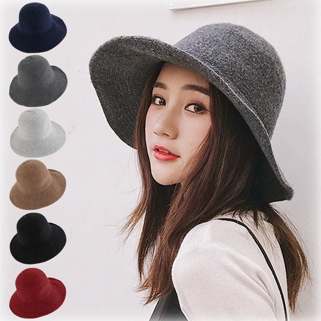 ニット帽子 レディース 折りたたみ つば広帽子 小顔効果 無地 防寒 ぼうし