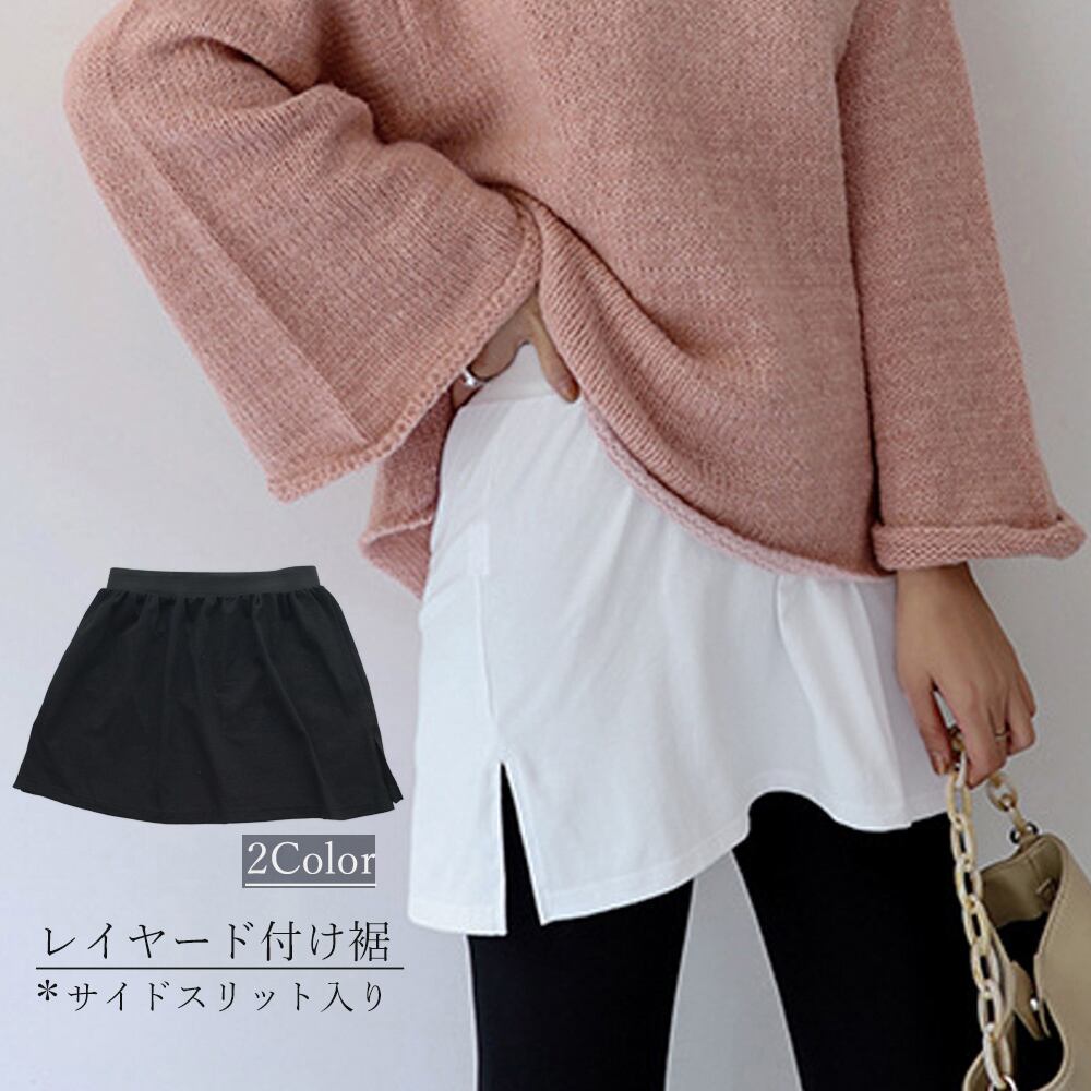 つけすそ レディース 重ね着 白 黒 無地 ウエストゴム 体型カバー ボトムス