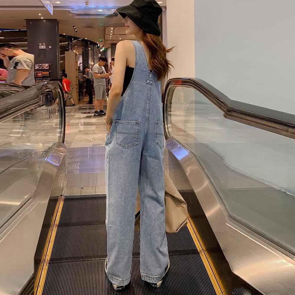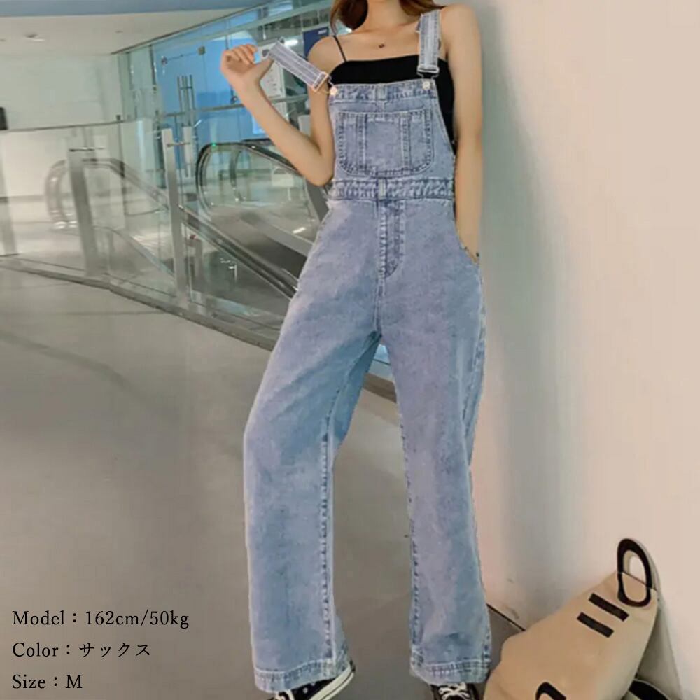 美脚 オーバーオール オールインワン ロングパンツ ジーンズ ストレート ジーパン