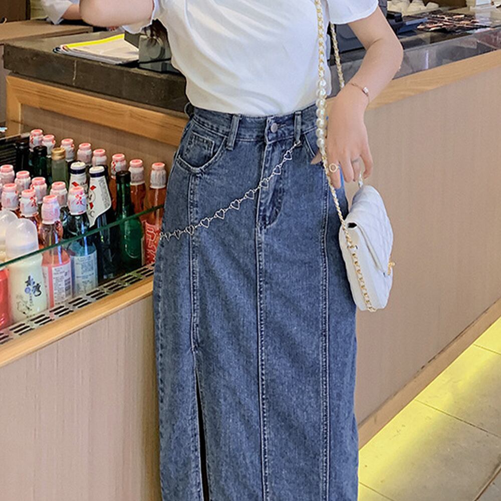 スリットからチラリと肌見せデザインが大人の魅力を醸し出すデニムスカート