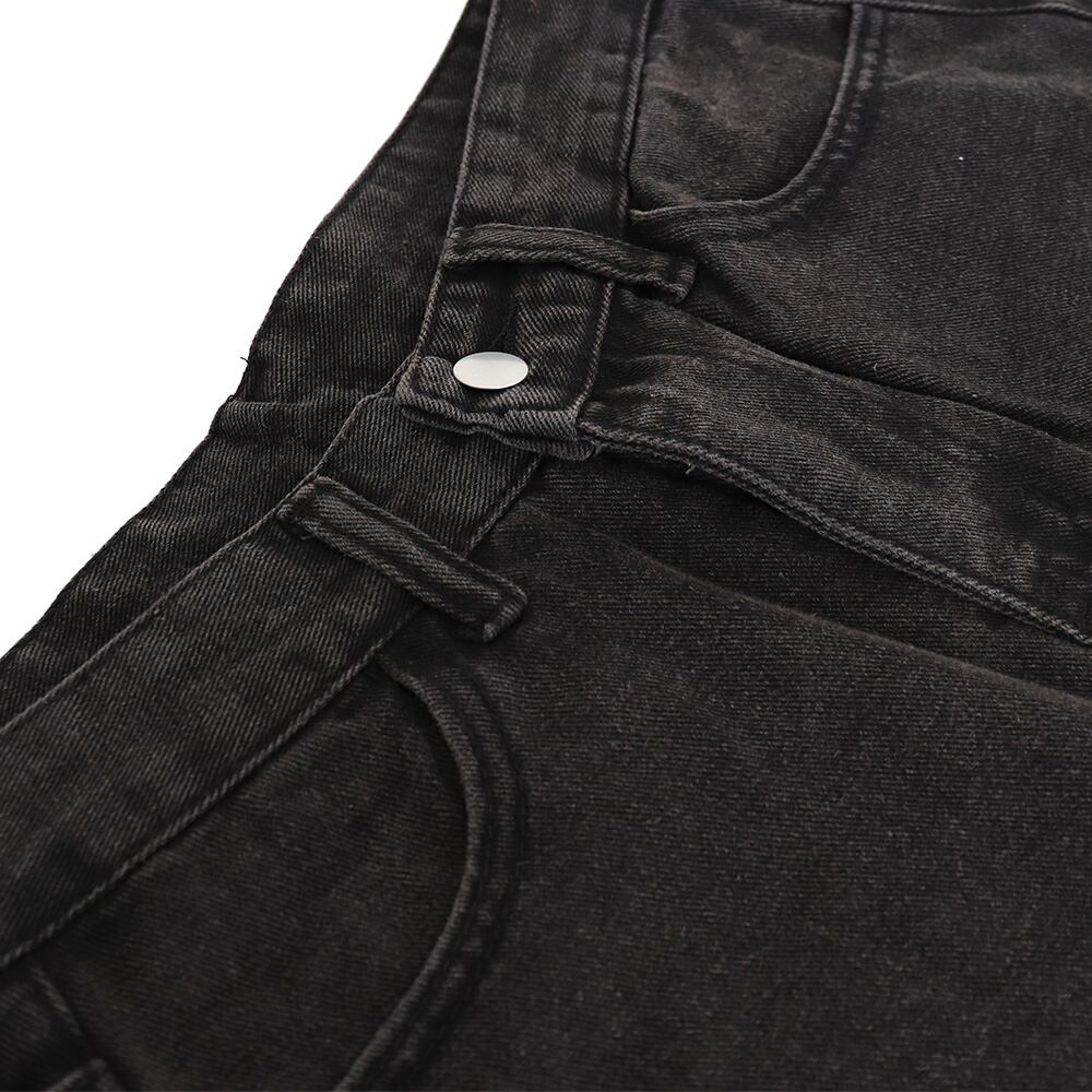 ハイウエスト カジュアル ロング パンツ ストレート ジーンズ ジーパン 大人 美脚 体型カバー ボタン付き