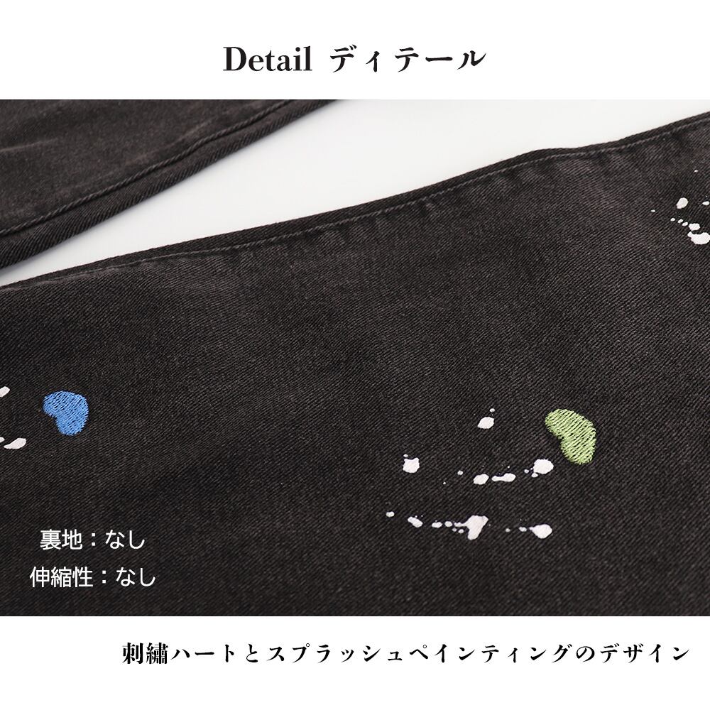 スプラッシュペインティングでかわいいデザインのデニムパンツです。