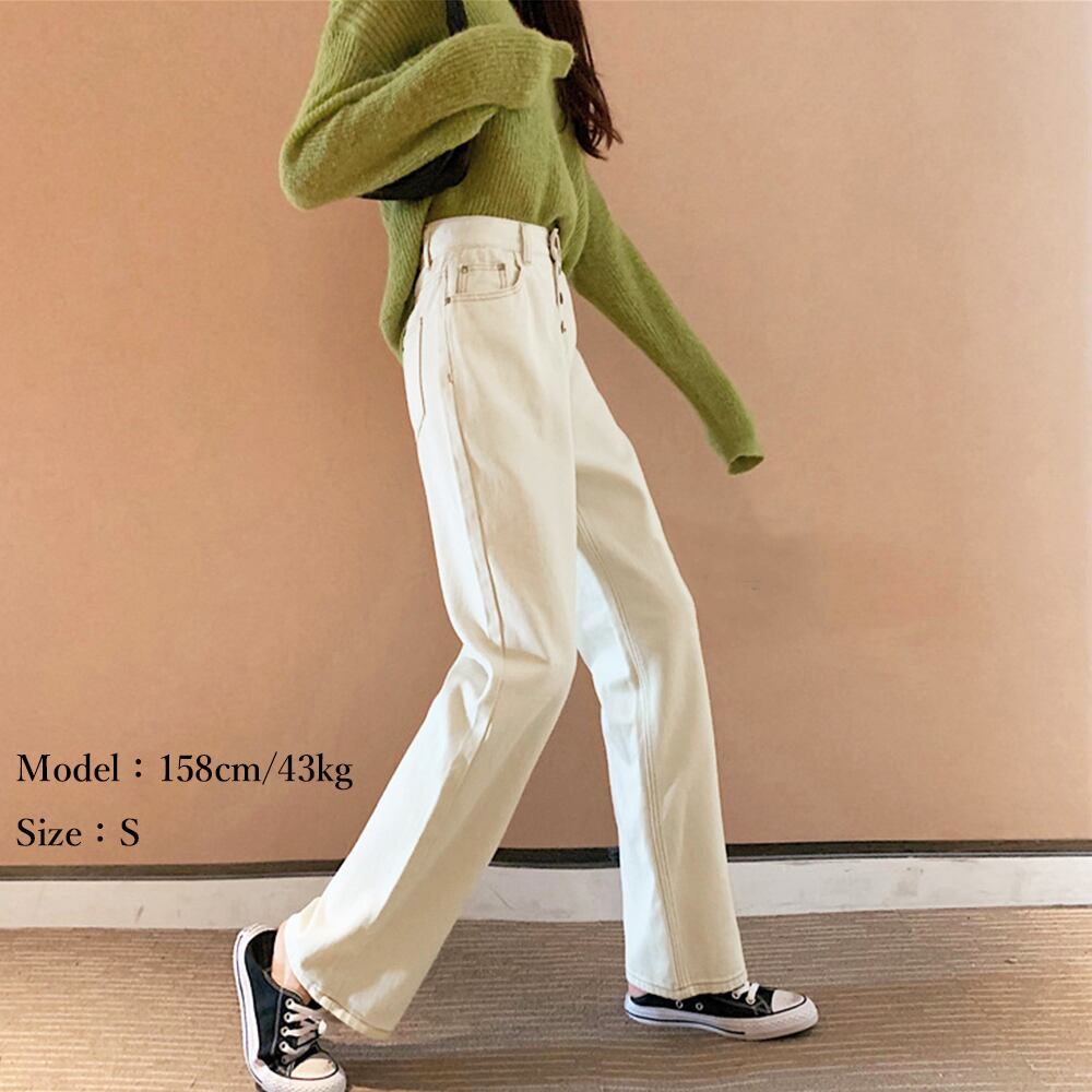 デニム ストレートパンツ ジーンズ 美尻 美脚 着やせ ジーパン カジュアル ワイトデニム オールシーズン ボトムス