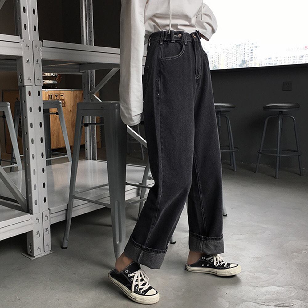 オルチャン長ズボン 裾 ロールアップ 細見えデニムパンツ