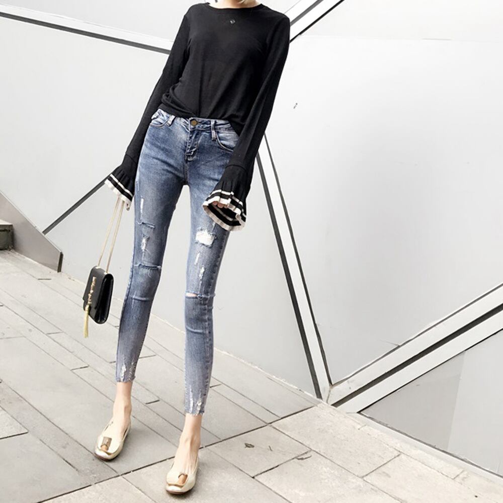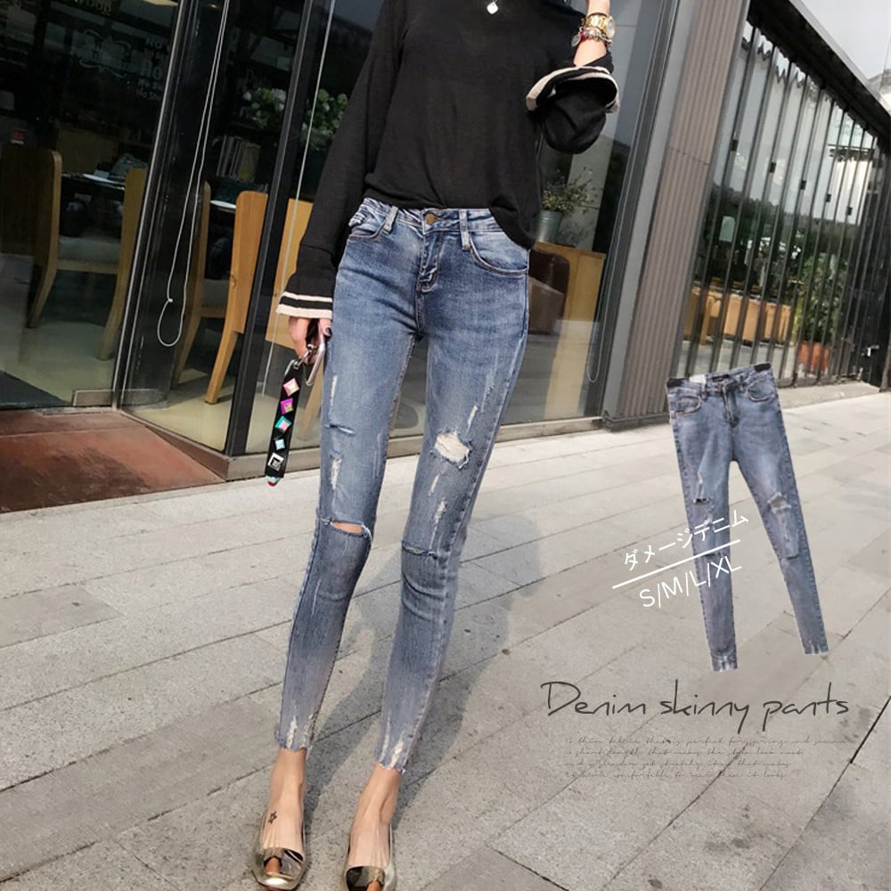 クラッシュ デニムパンツ レディース ハイウエスト タイト ジーパン ストレッチ パギンス アンクル丈 9分丈