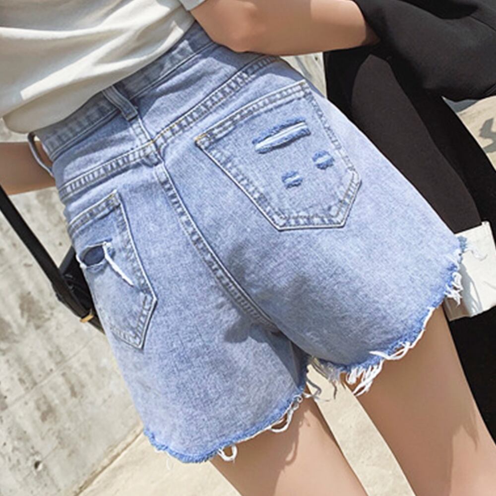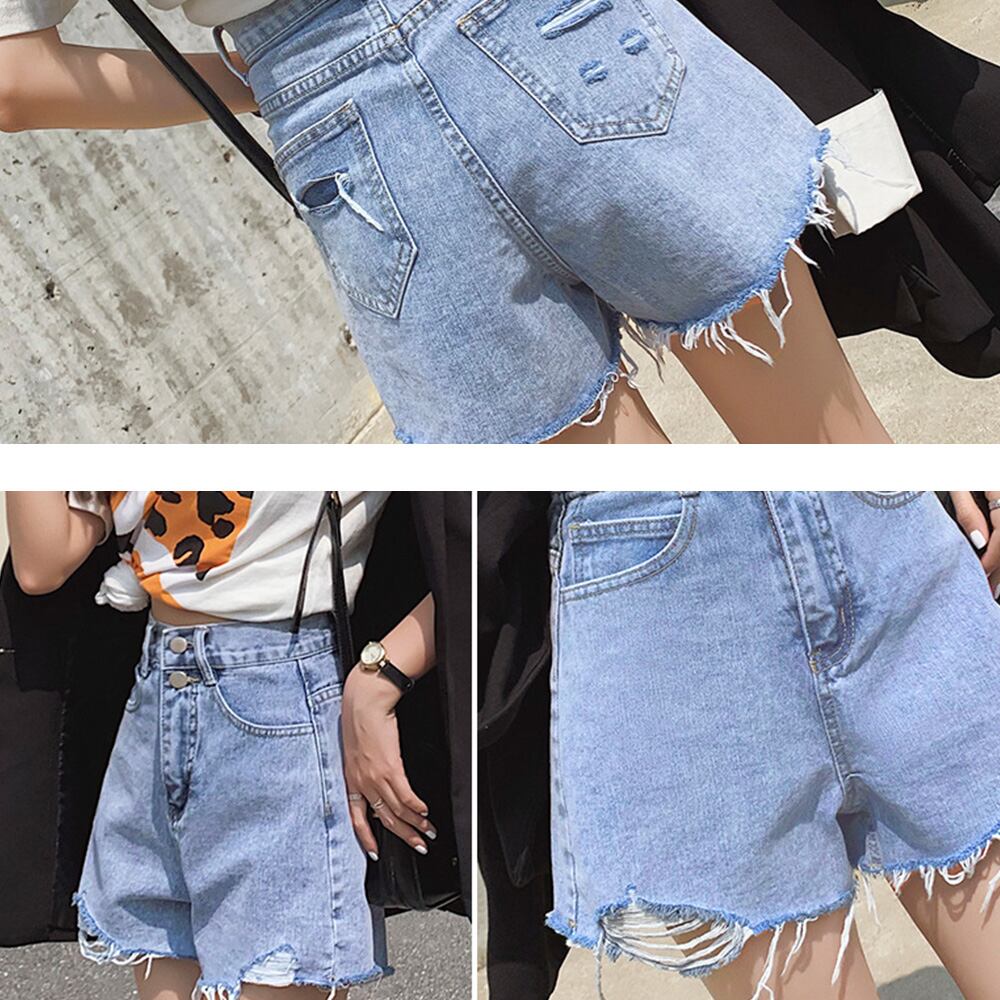 ハイウエスト ダメージ入り 着やせ パンツ ホットパンツ ボトムス ポケット ショートデニム