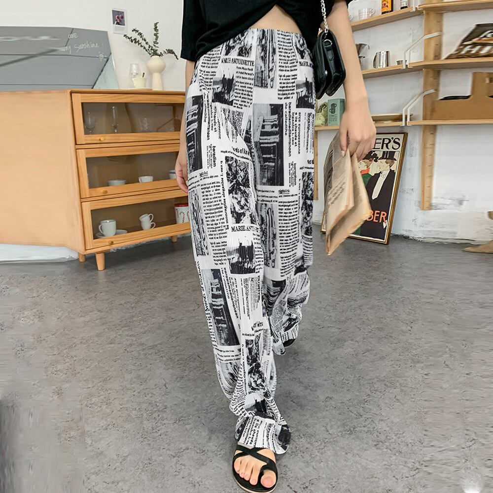 柄 プリーツワイドパンツ 夏レディース