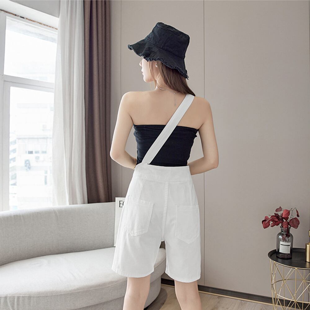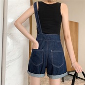 シルエットが綺麗でトップスとの相性が抜群なワンショルダーサロペット付きのデニムショートパンツ