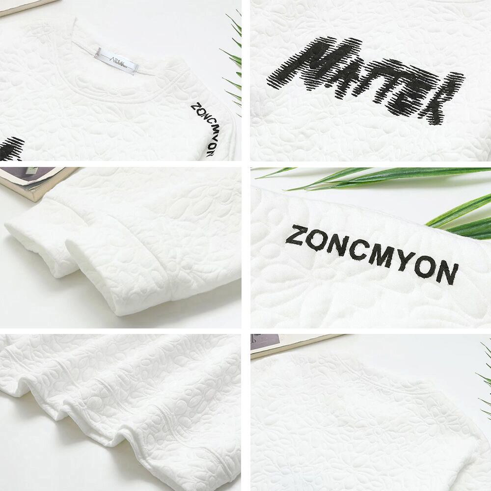 立体感のあるエンボス加工で仕上げたスウェットトップス