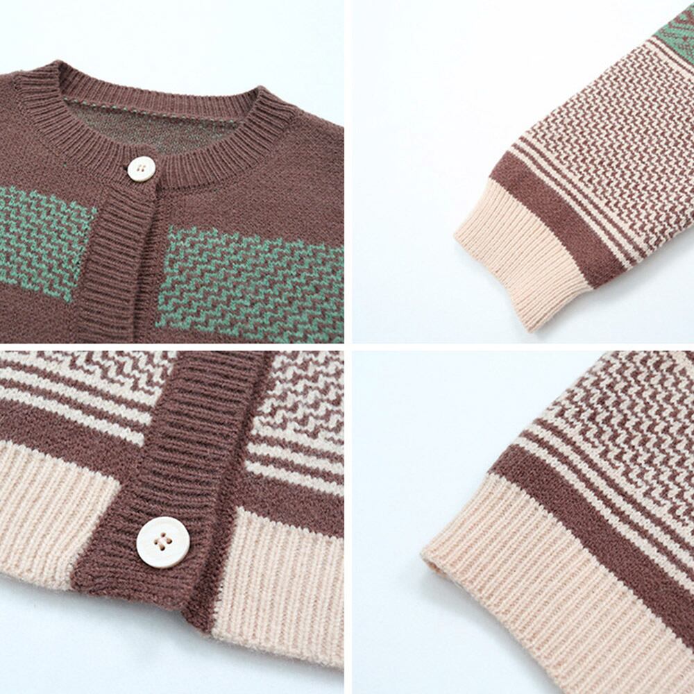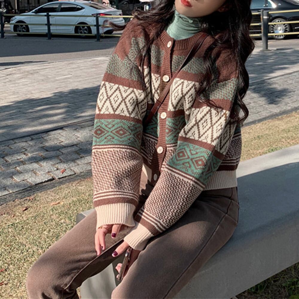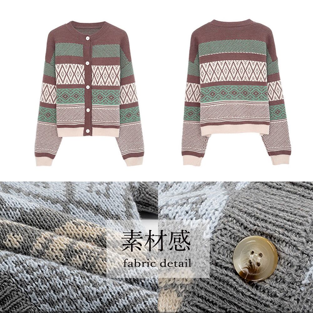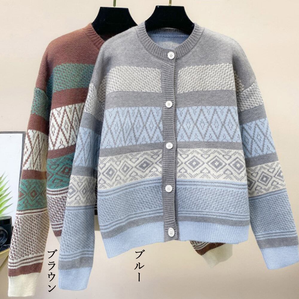 ジャガードニット オルチャン お洒落 丸首カーディガン