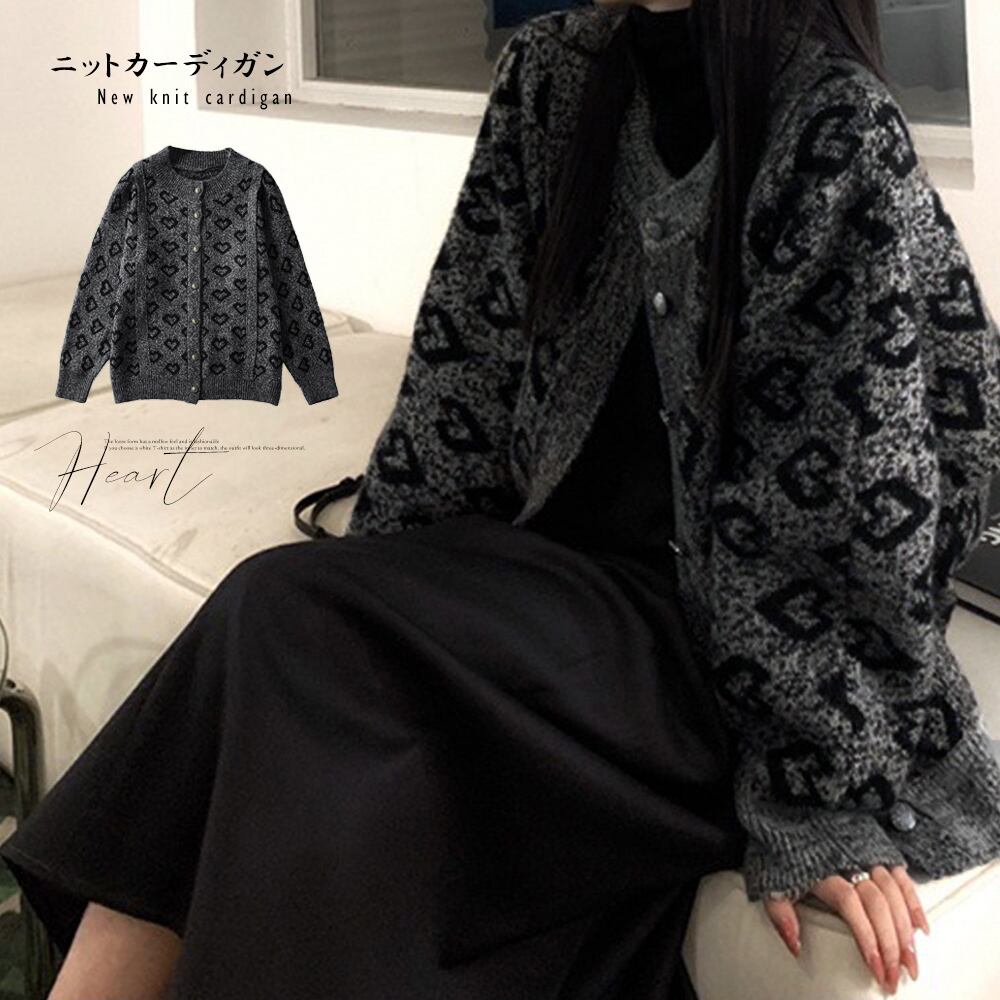 レトロ 前開き ニットセーター 中厚手 ゆったり 長袖 ニットアウター 秋冬 オシャレ ライトアウター 着やせ