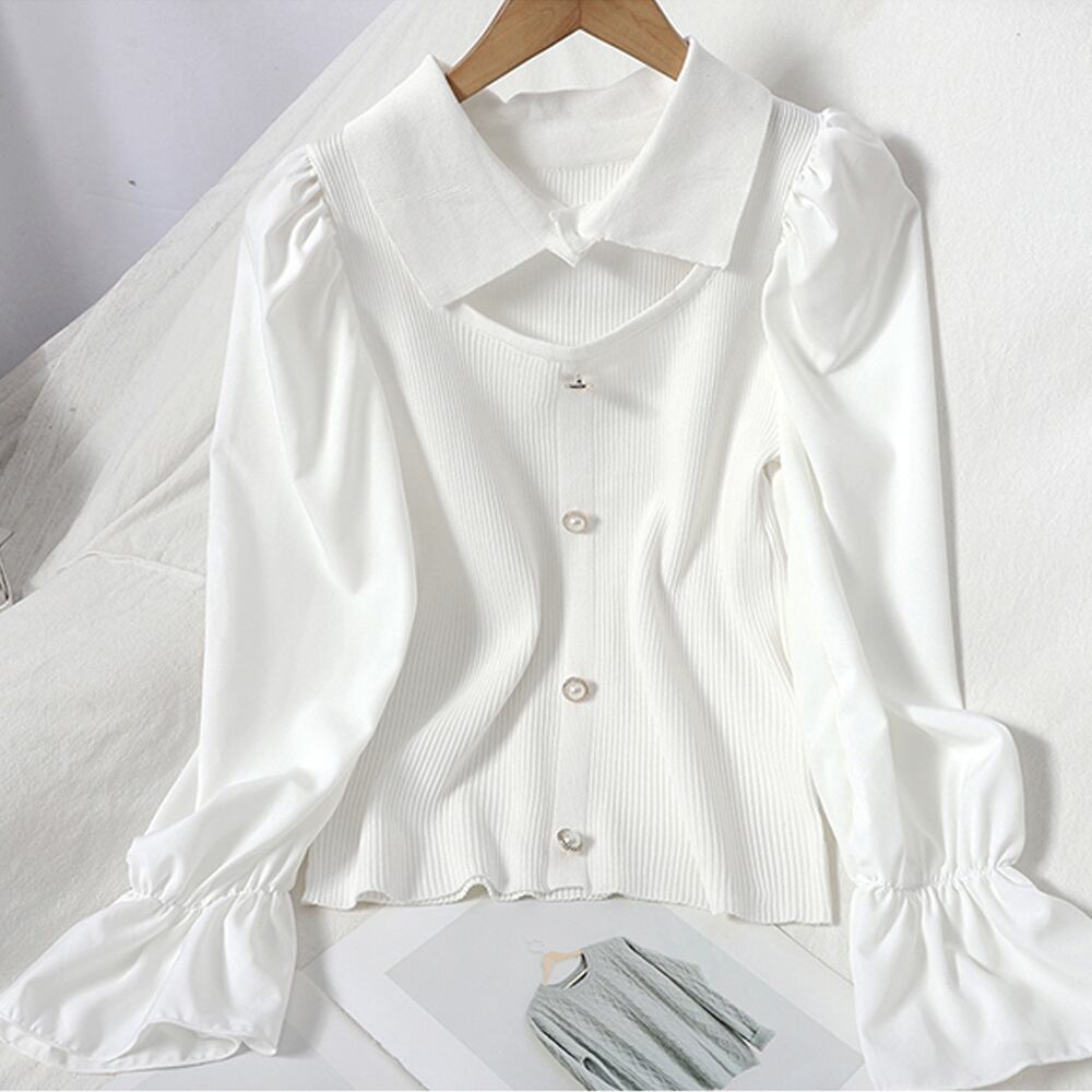 レディース 長袖 異素材 ニットブラウス ボリューム袖?フェミニン感 トップス エレガント