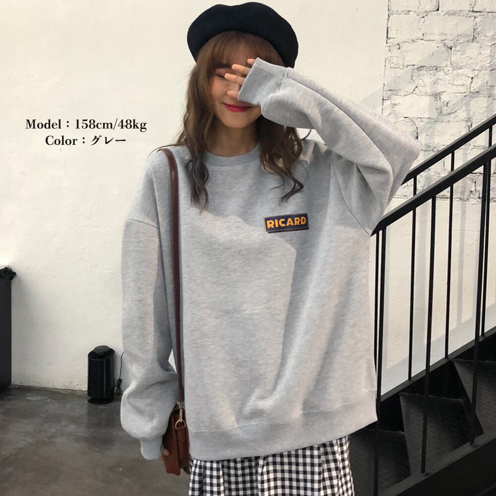 トップス プルオーバー 裏起毛 英字ロゴ 体型カバー カジュアル ゆったり 春秋冬