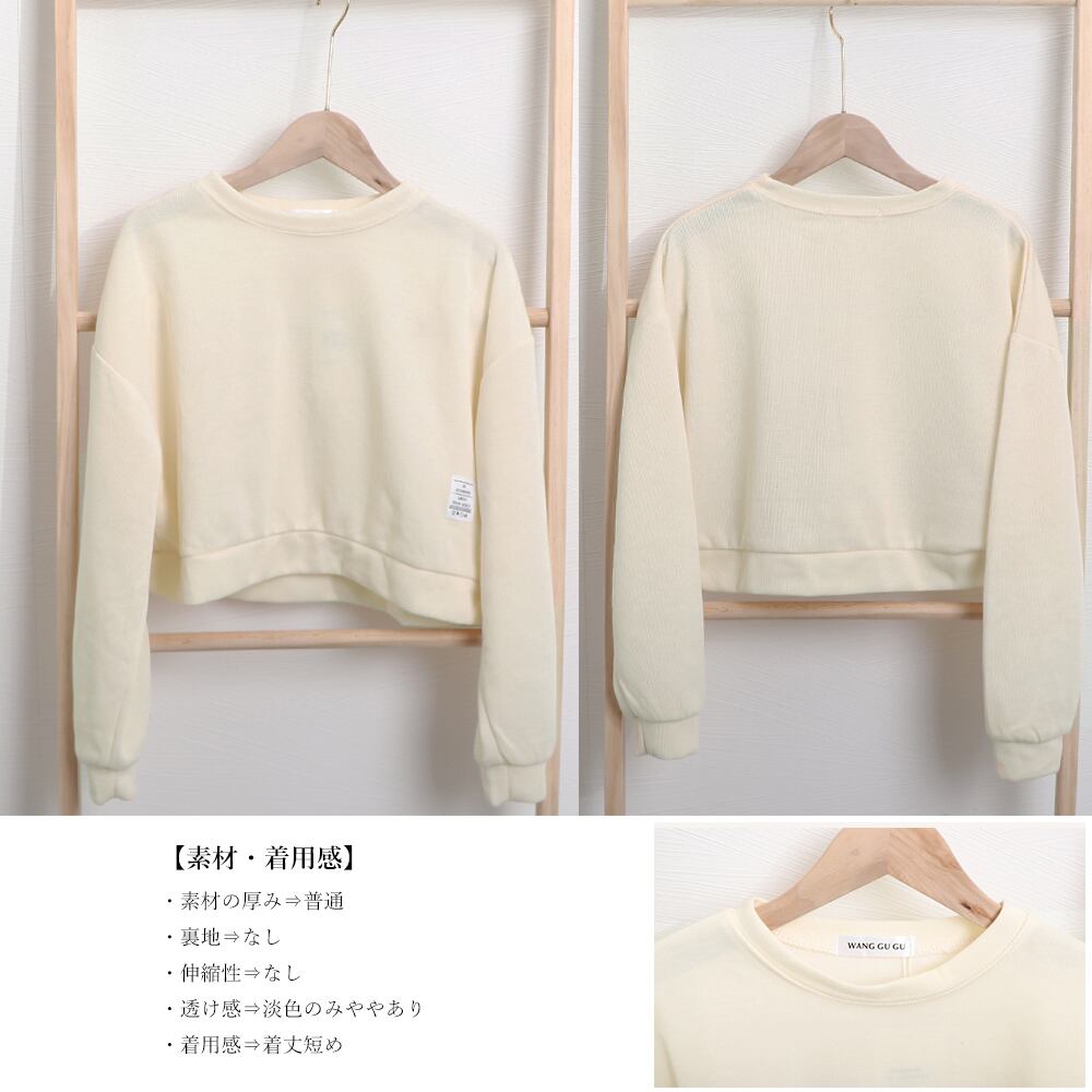ショート丈 トレーナー ロゴ クルーネックトップス 無地 カットソー スウェットプルオーバー 通学 春秋冬 楽ちん 服