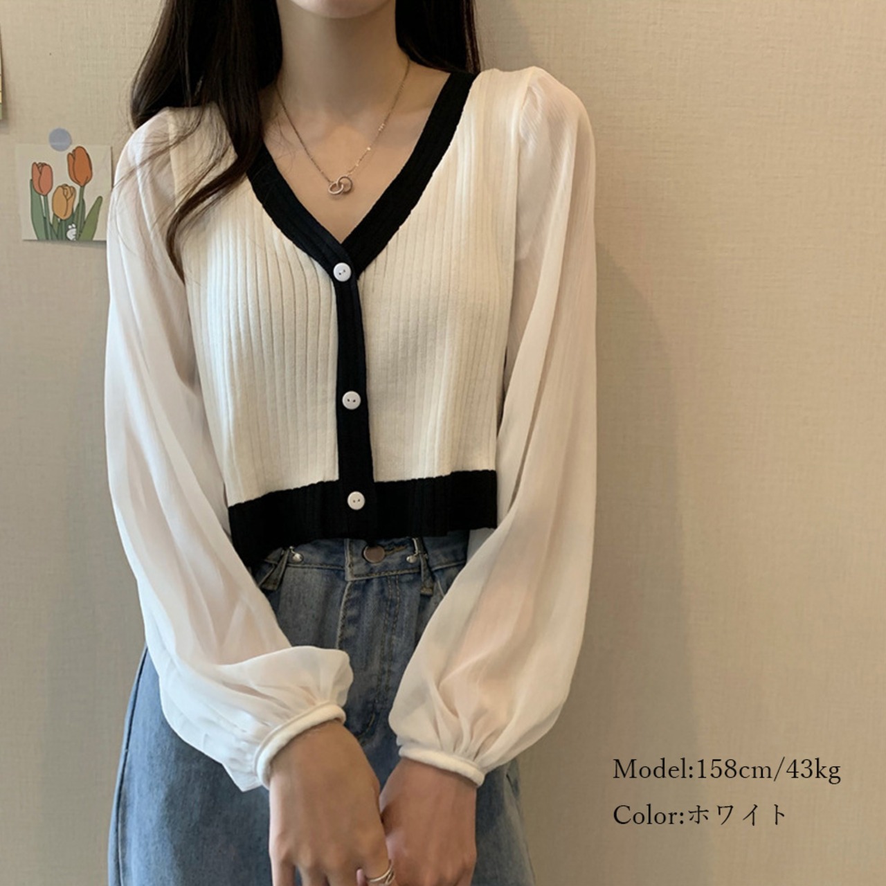 Vネック カーディ 通勤 通学トップス バイカラー ニット