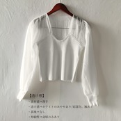 シフォンの切り替えでデコルテ、袖や背中見せるリブニットトップス