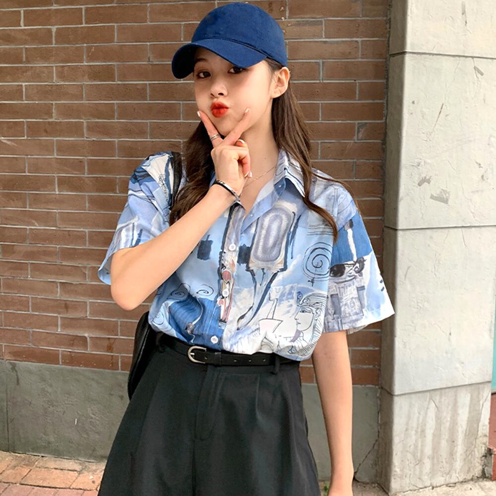 カジュアル サマーシャツ 襟付き ゆったり レトロデザイン 開襟シャツ 着やせおしゃれ アロハシャツ 前開きトップス派手 ブラウス レディース 夏服