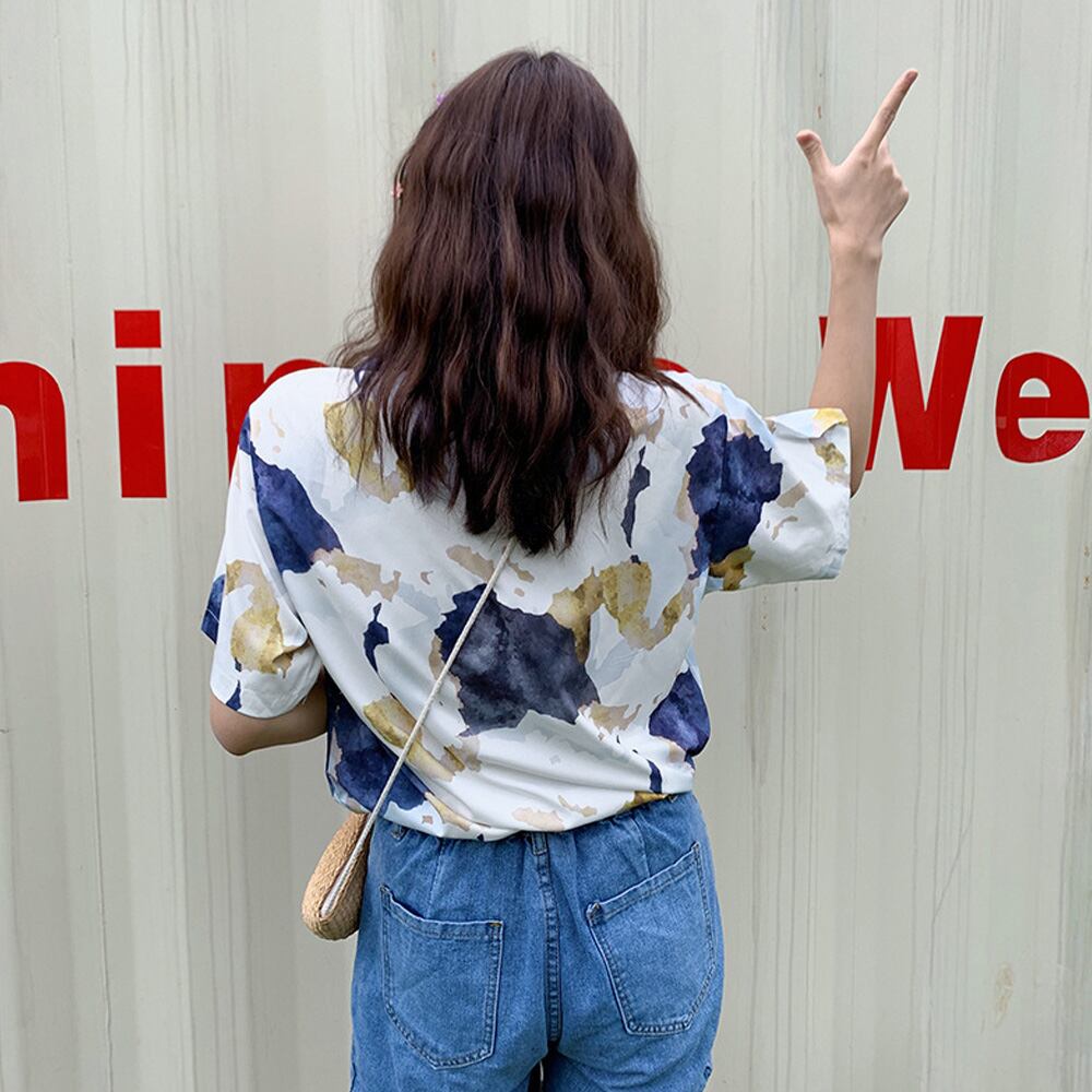 かわいい 半袖 柄カーディガン ブラウス おしゃれ スキッパーブラウス 着やせ 前開きトップス 夏 レトロ 襟付き 開襟シャツ サマー カジュアル柄シャツ