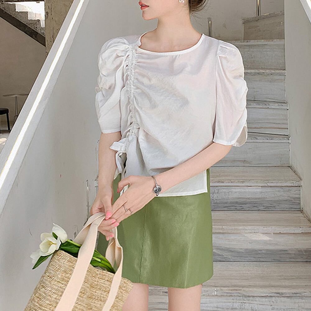 紐付きなのでブラウスのフィットさを調節できるので女性らしい美ラインシルエットを華奢見せ