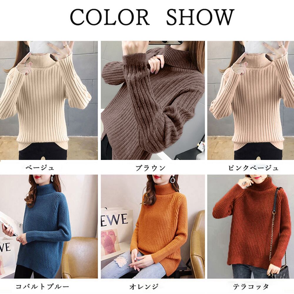 リブニットトップス タートルネック