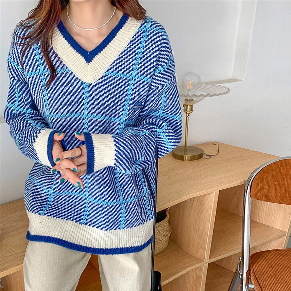 ニットトップスVネックニットセーター