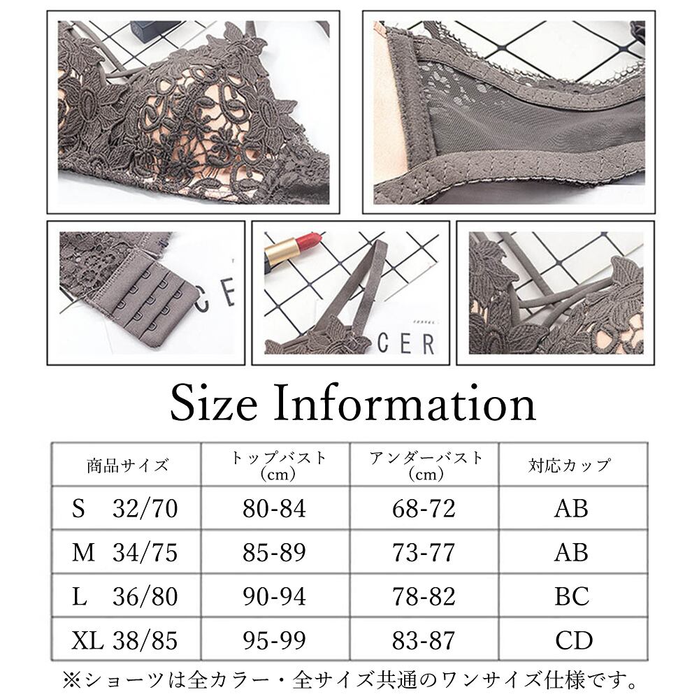 総レースがセクシーで可愛いノンワイヤーランジェリーセットです