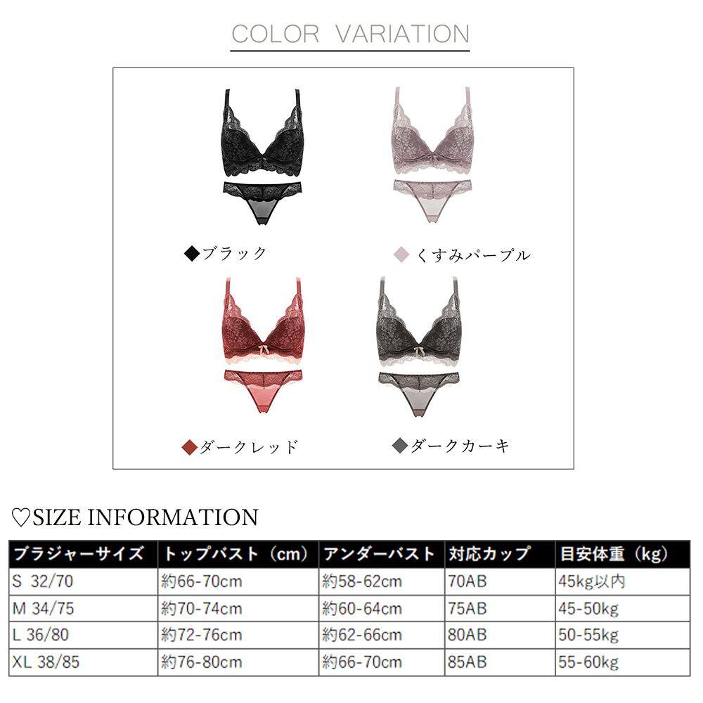 総レース ブラジャー ショーツ セット レディース ノンワイヤー ランジェリー