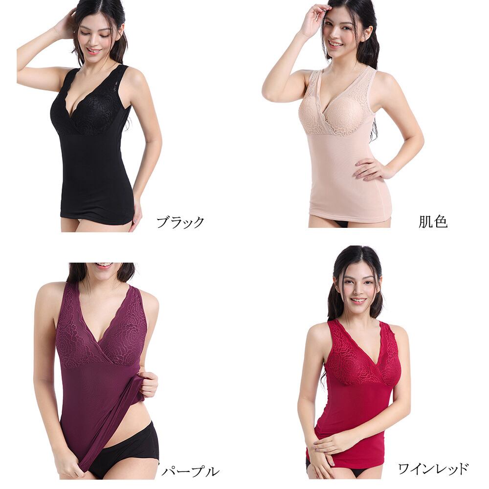 裏起毛 ブラトップ タンクトップ レディース カップ付き レース トップス