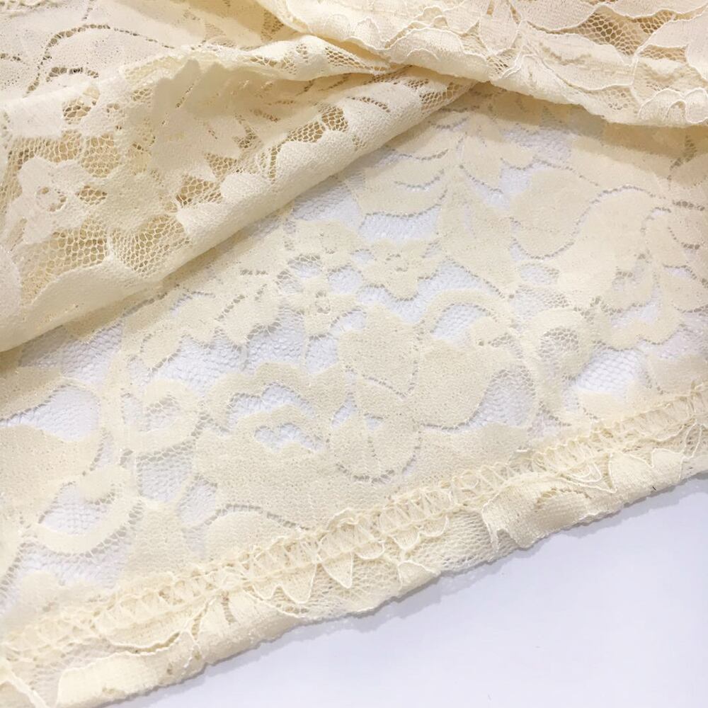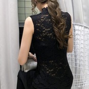 透け感が楽しめるハイネックレースで、顔回りを華やかに