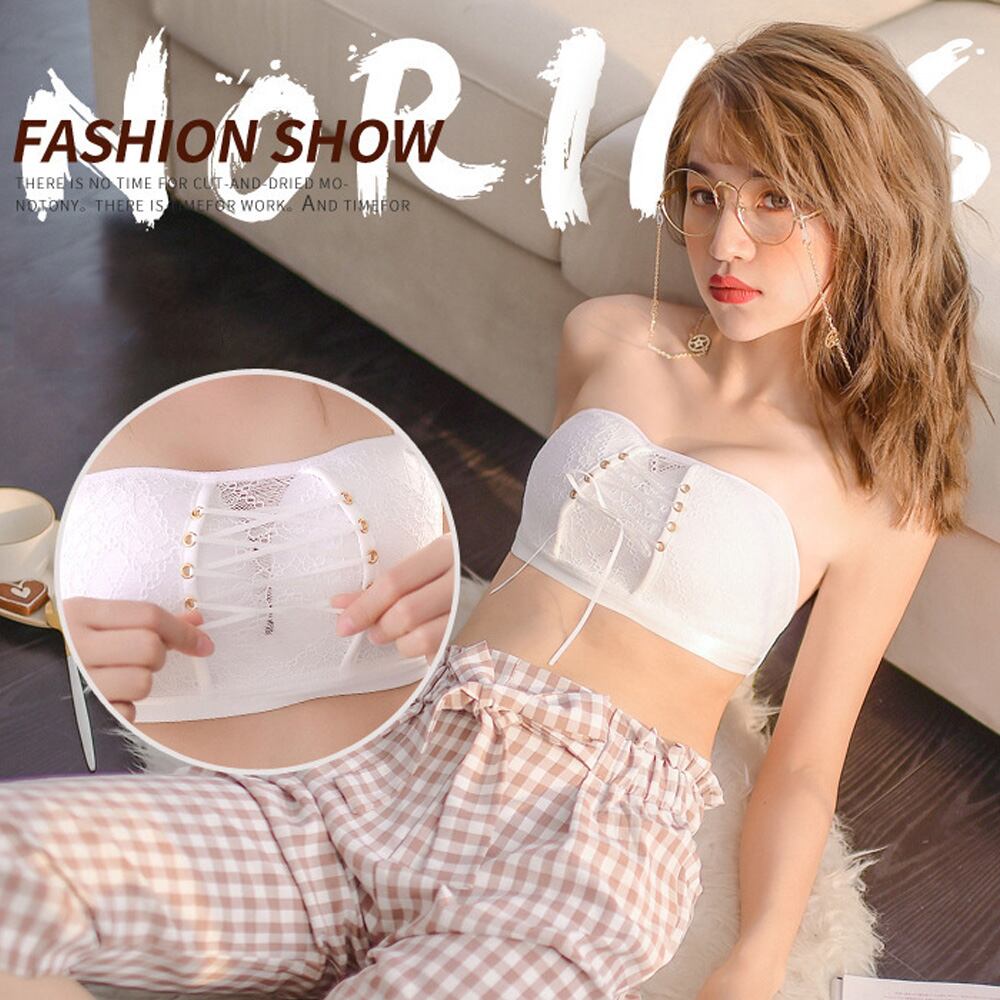 チューブトップ ブラ 落ちない ベアトップ カップ付 ブラトップ レースアップ