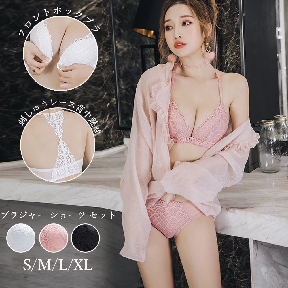 ノンワイヤーブラ 背中魅せブラ シースルー ショーツ バストアップ ブラジャー ショーツ セット