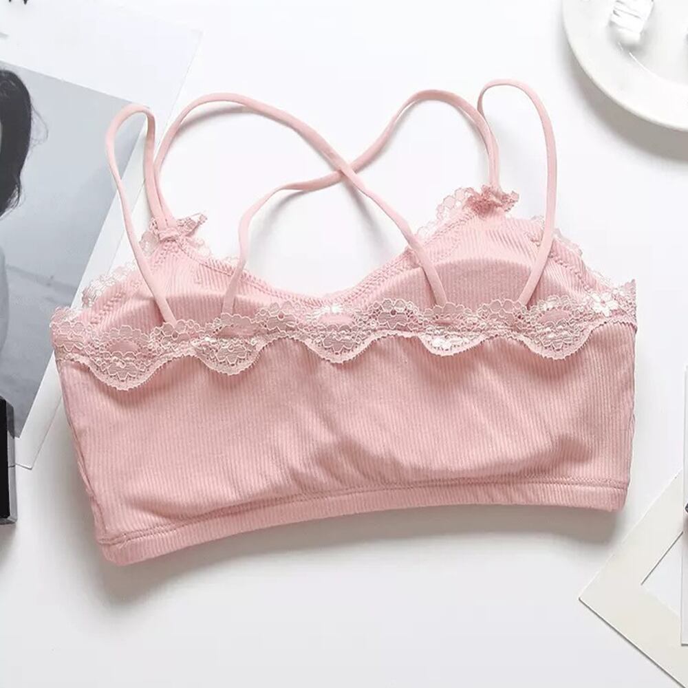 レース キャミブラ カップ付き ブラトップ ショート丈 キャミソール
