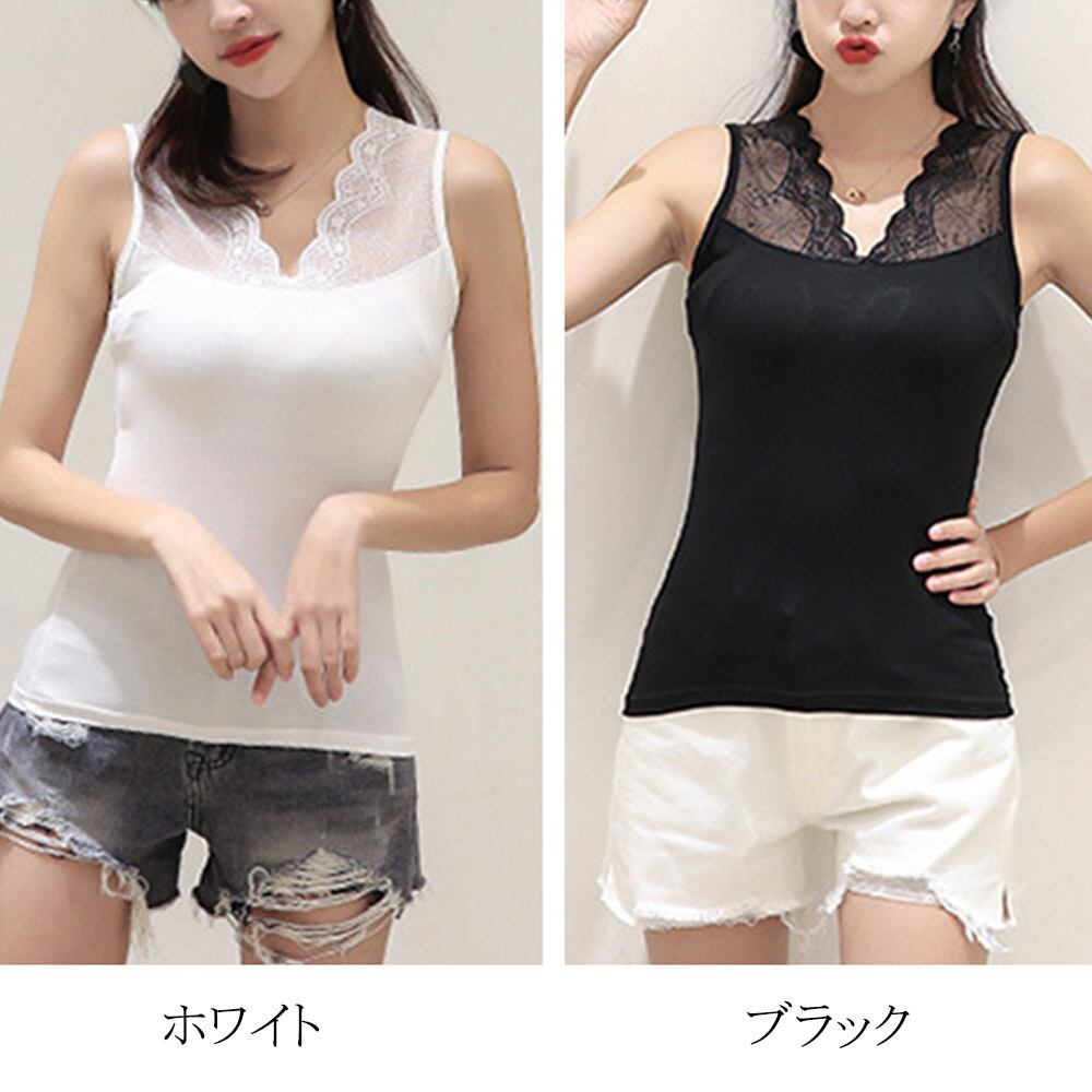 レース タンクトップ vネック インナー レースキャミソール ペチコート