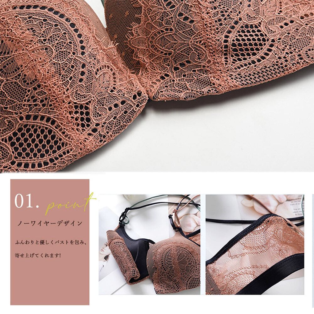 総レース ブラジャー ショーツ レディース セクシー 女性 下着 ノーワイヤー