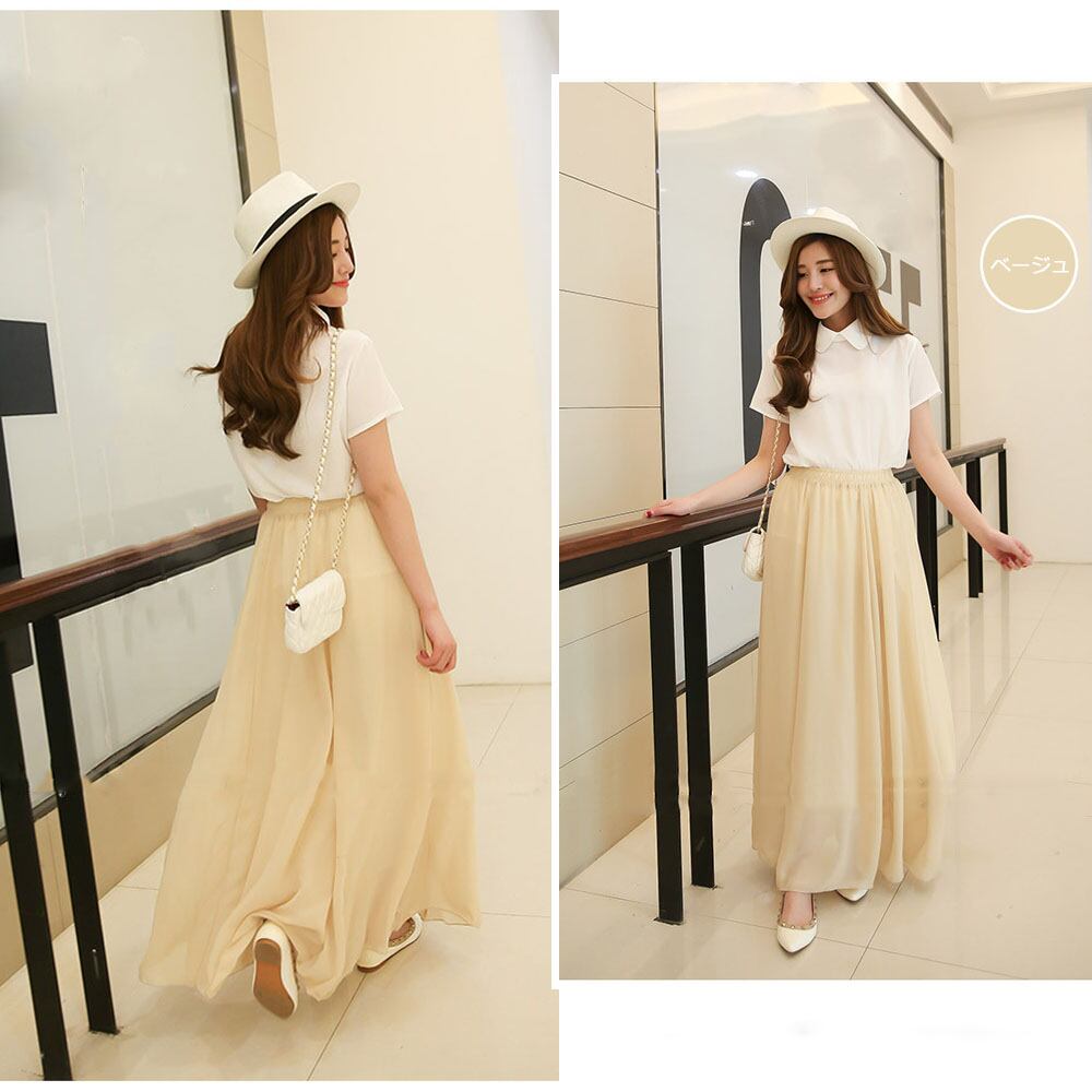 シフォンスカート ウエストゴム マキシスカート ロングスカート 春夏 2タイプ