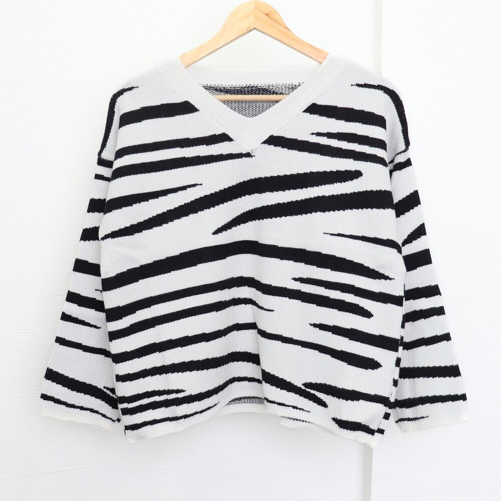 長袖ニット Vネックニット 柄ニット