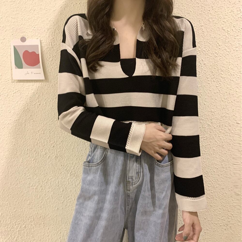 長袖Vネック トップス へそ出し ニット プルオーバー きれいめ 着やせ