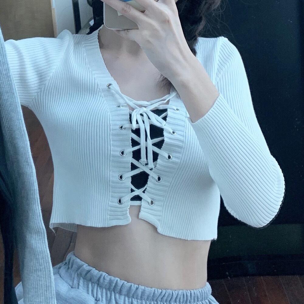 ニットトップス へそ出し セーター ショート丈 セクシー tops Vネック