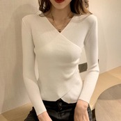 スタイリングを華やかに印象付けるカシュクール風ニット