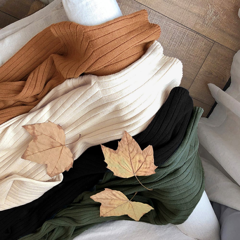 レディース ニットソー 着やせニット 細見 おしゃれ 長袖ニット ハイネック セーター 無地 シンプル 秋冬 ニット
