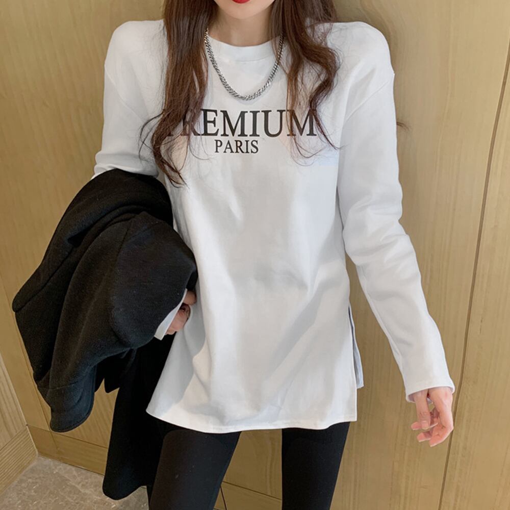 チュニックTシャツ スリット カットソー トップス ロゴトップス カジュアル おしゃれ 英字ロゴ
