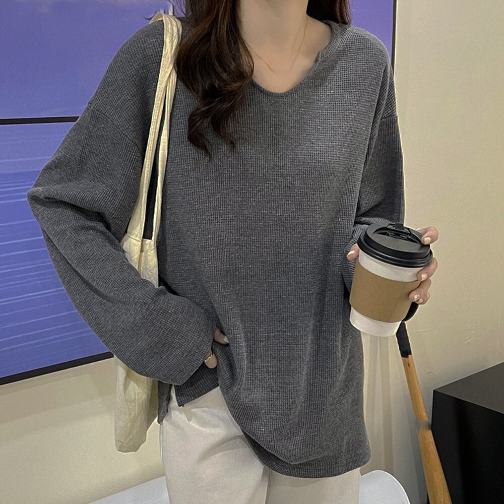 トップス Vネック チュニック カジュアル レディースtシャツ ゆったり 体型カバー 無地 シンプル 春秋冬