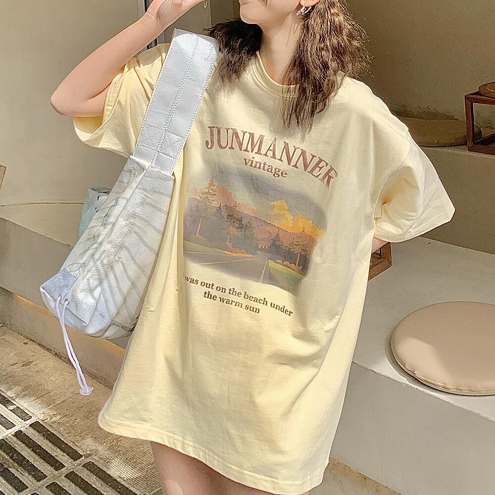 プリントtシャツ ゆったり シルエット 柄 トップス Tシャツ チュニック おしゃれ カットソー 夏服 体型カバー