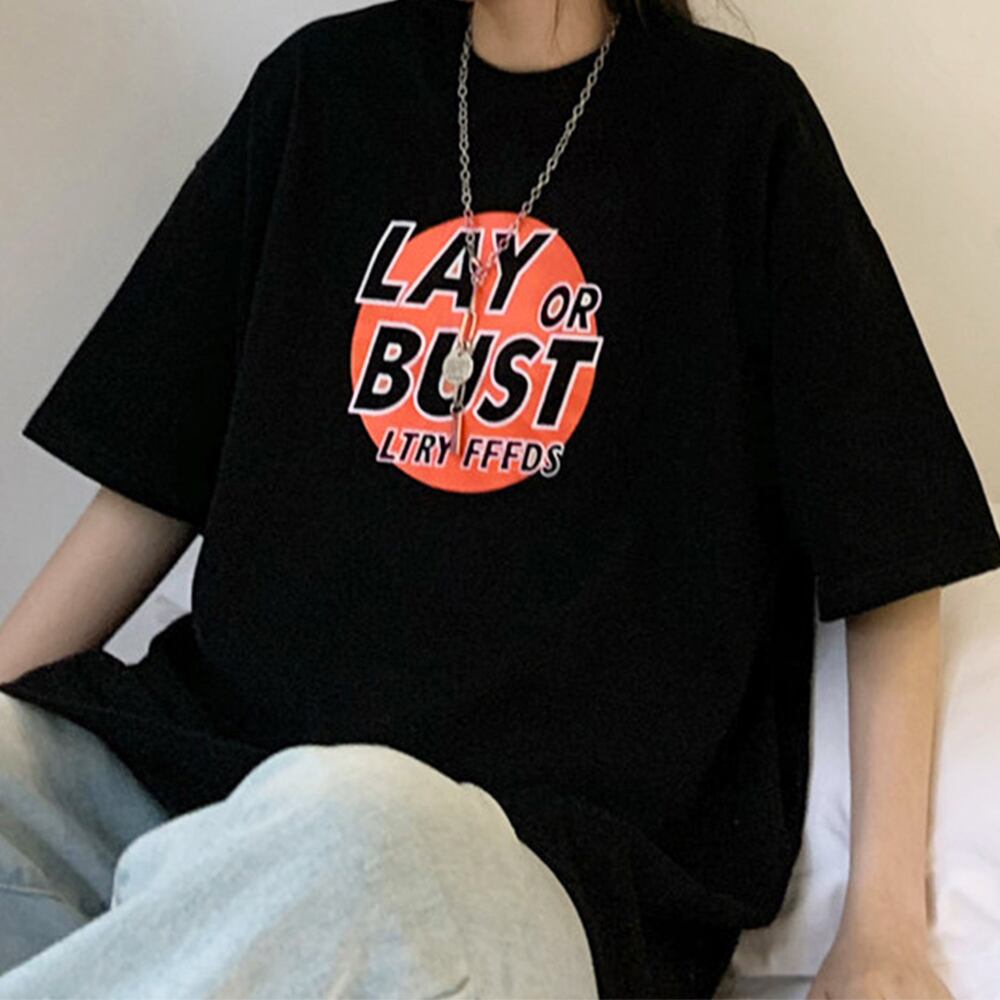レディース クルーネック ロゴtシャツ 体型カバー ストリート 英字プリント トップス ゆったり カットソー