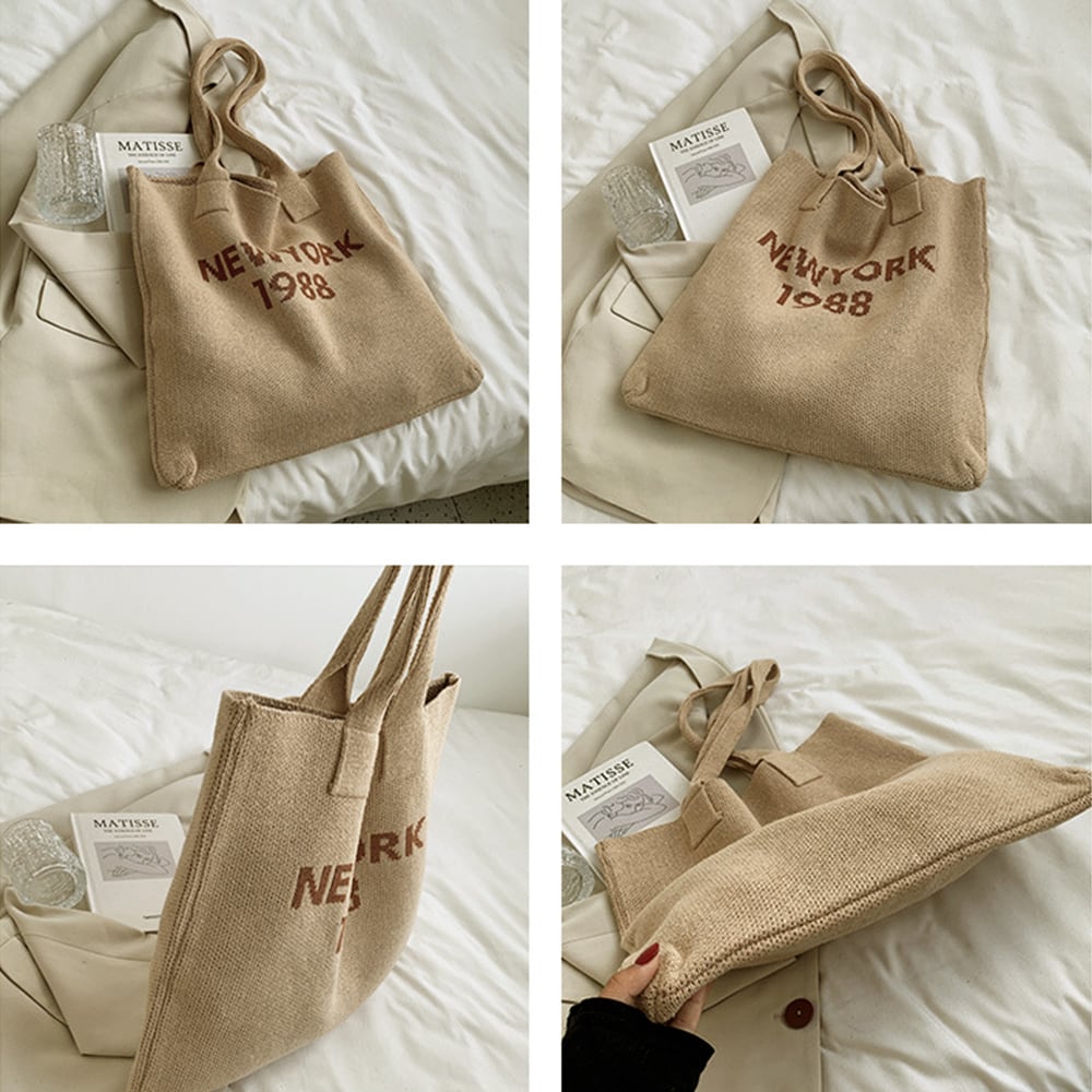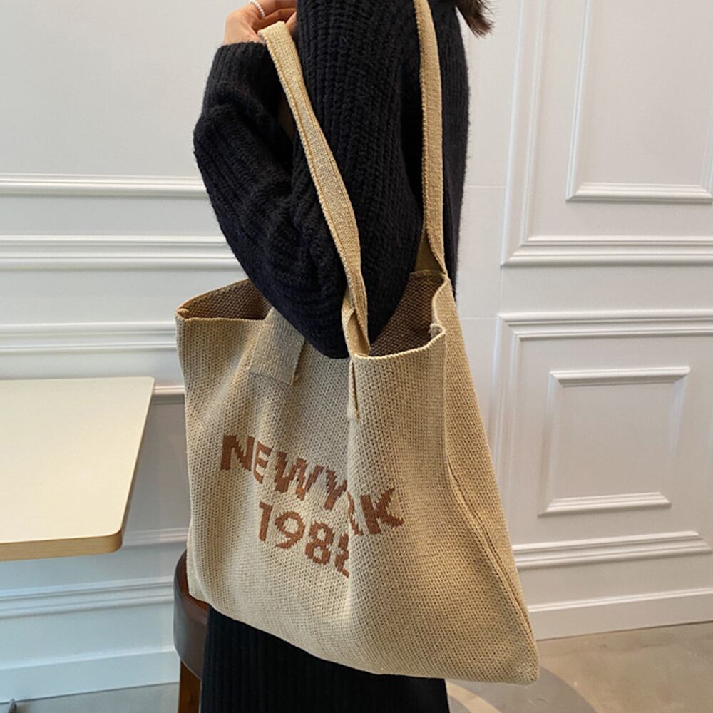 おしゃれ ロゴ 編みバッグ 軽量 シンプル 肩掛けカバン 大容量 可愛い 手提げかばん オルチャン