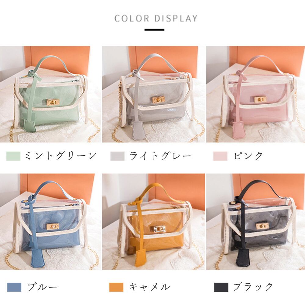 夏らしく涼しげなクリア素材にフェイクレザーポーチ付きのアンサンブルバッグ。