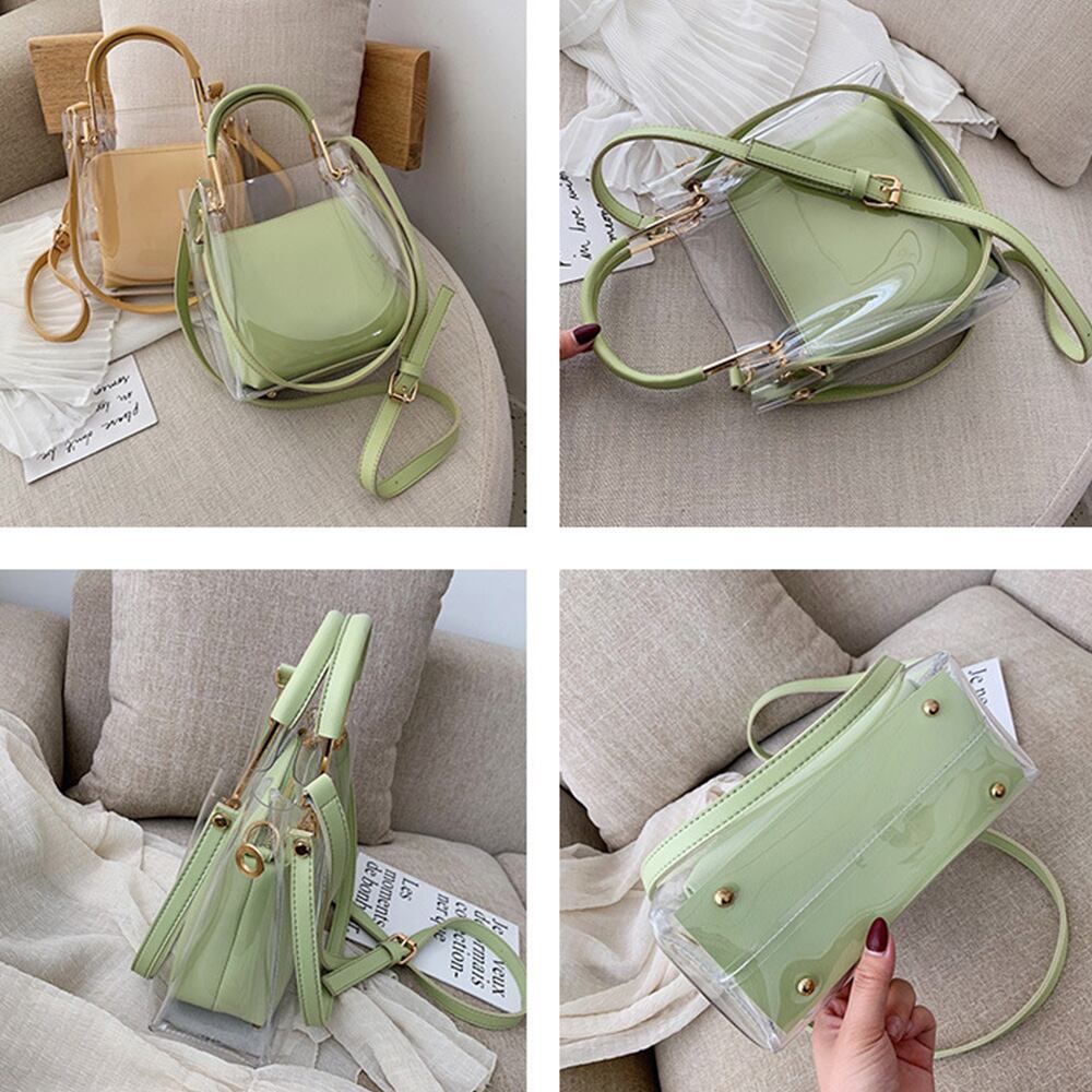 これからの季節に欠かせないポーチ付きの2点セットのPVCショルダーバッグ