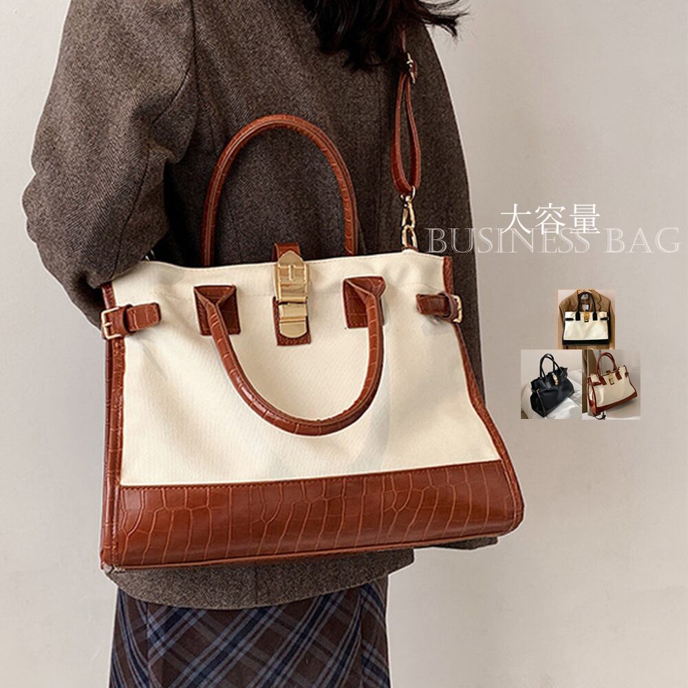 2WAY ショルダーバッグ PU 斜めかけ A4 上品 収納 キャンパス 異素材 手提げ鞄 通勤 高級質感 オシャレ ハンドバッグ