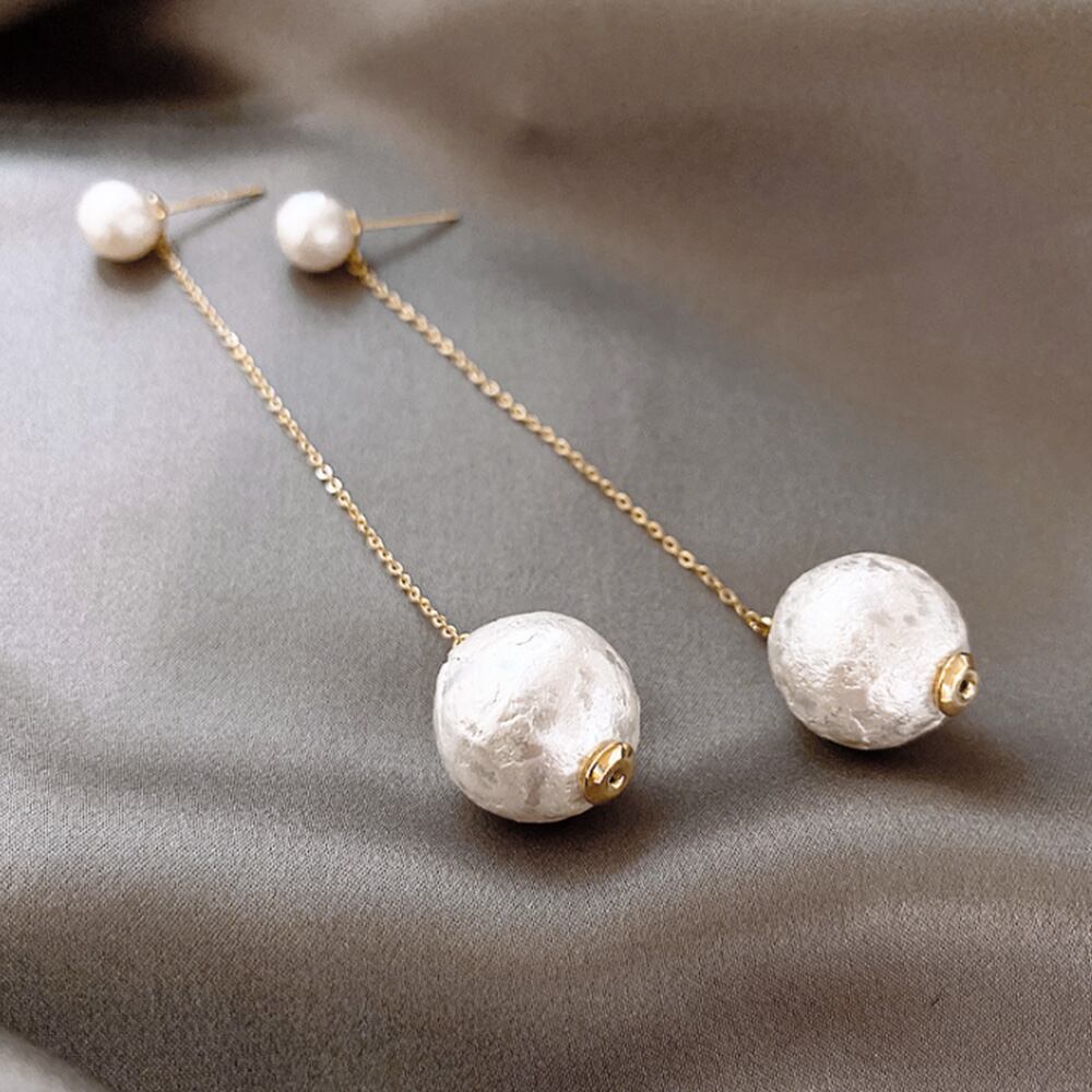 チェーンピアス2wayレディース フェイクパール ロングピアス 揺れる